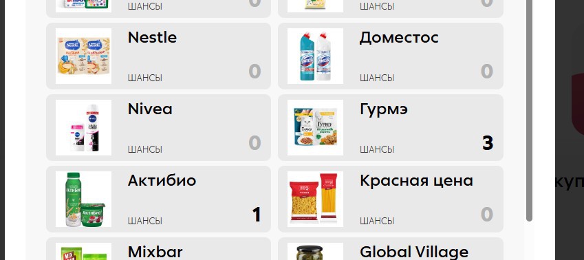покупок более чем на 5к и ... всего один шанс в каждой категории, зато появился плюсик в правом углу