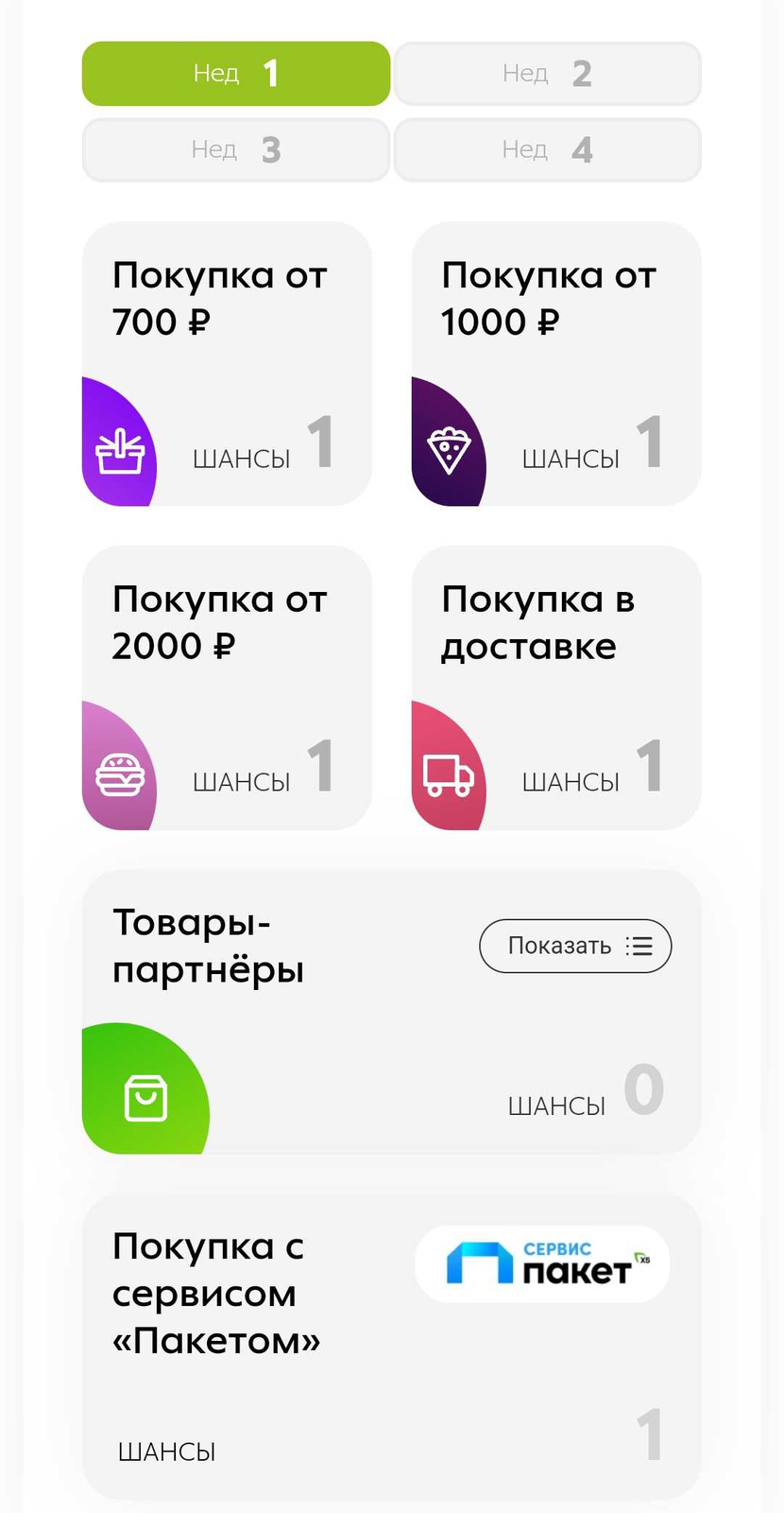 - Накопите покупок на сумму от 700 руб. в неделю;