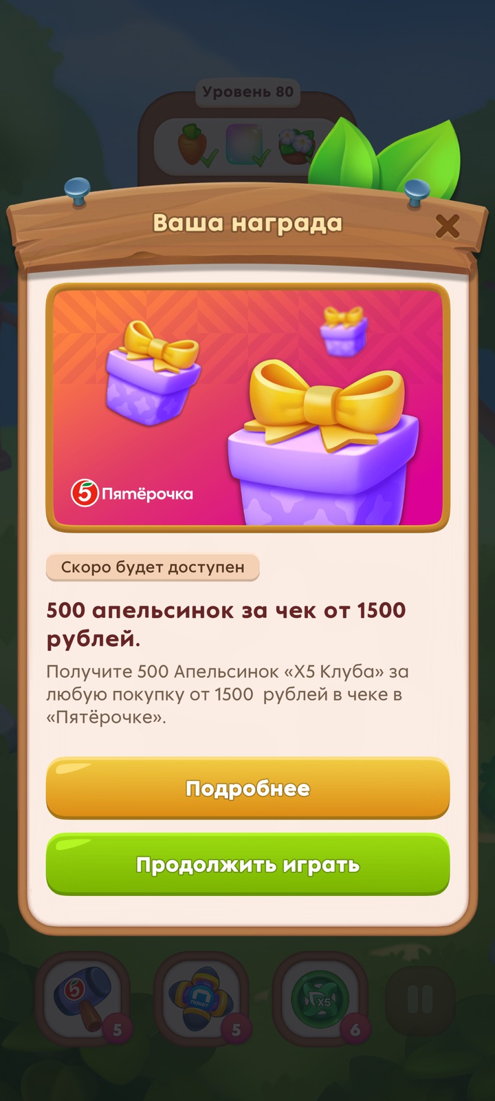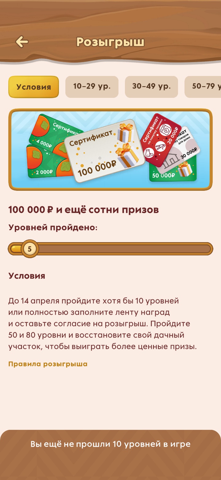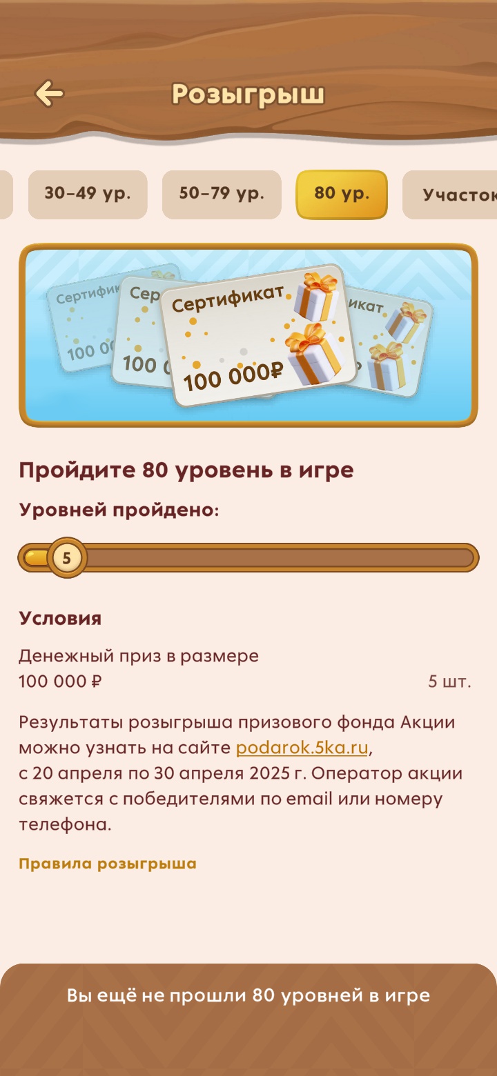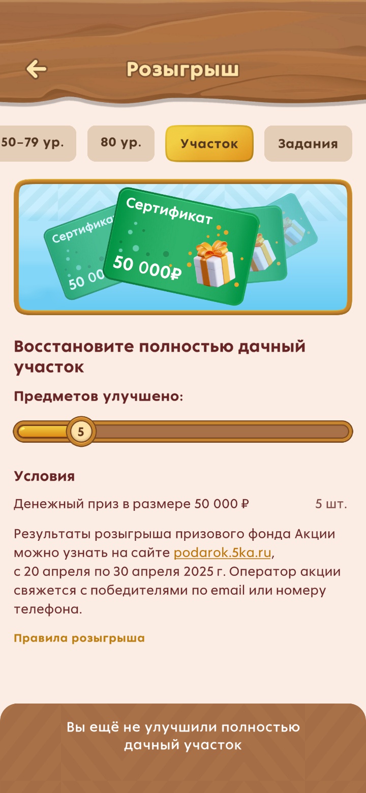 - Пройдите 50 и 80 уровни и восстановите свой дачный участок, выиграть ценные призы.