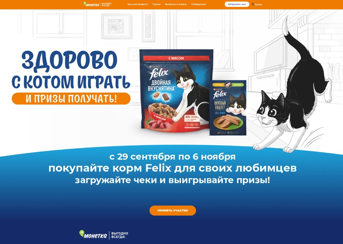 С 29 сентября по 6 ноября покупайте корм FELIX® для вашего питомца в «Монетке», регистрируйте чеки и выигрывайте призы!