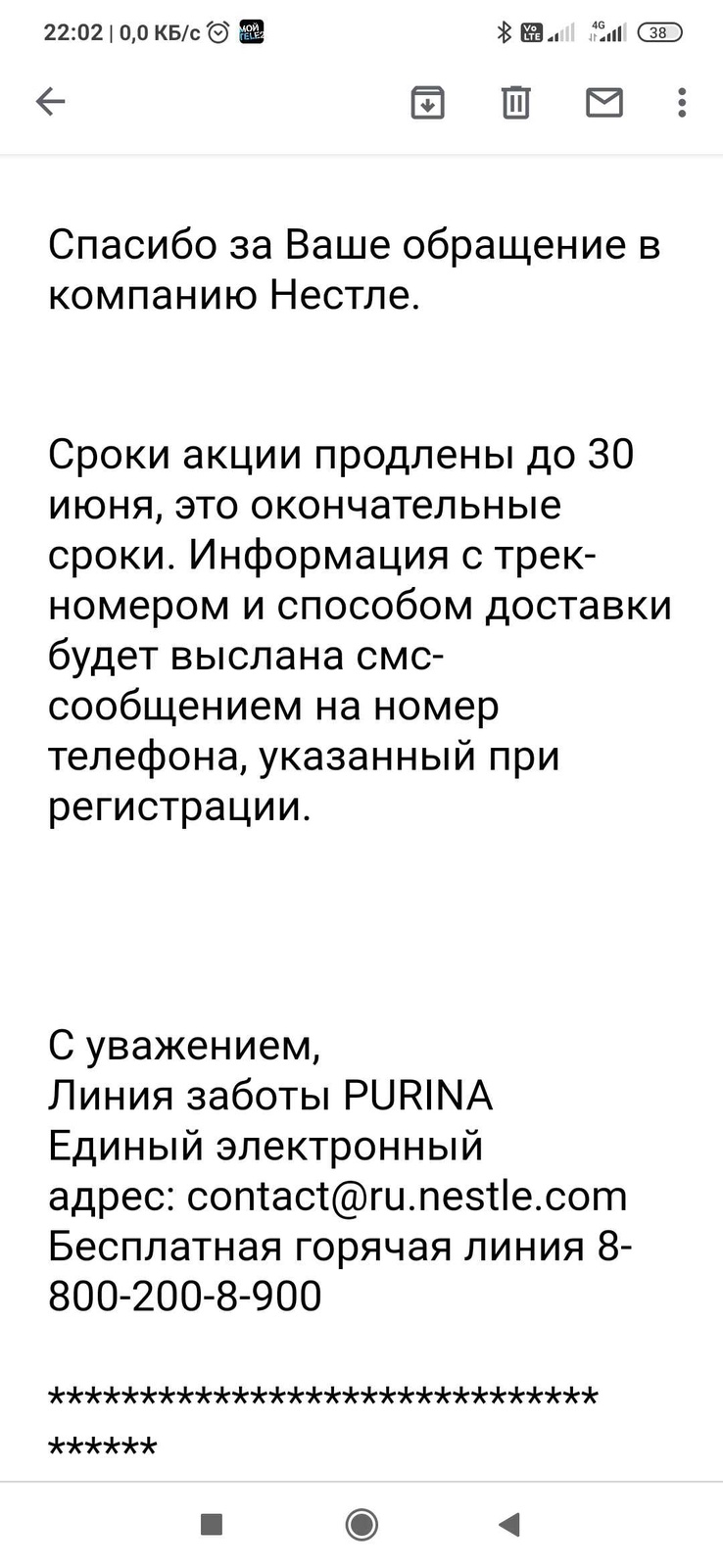 В случае, если по каким-либо причинам вы не получите свои призы, просим вас обратиться повторно к нам на Горячую линию, чтобы мы составили обращение и направили его организаторам акции.