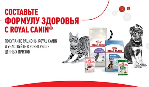 Покупайте рационы Royal Canin, регистрируйте чек и участвуйте в розыгрыше ценных призов.