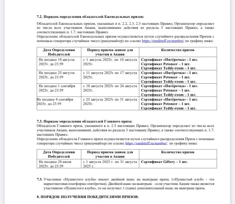 - Еженедельный приз: