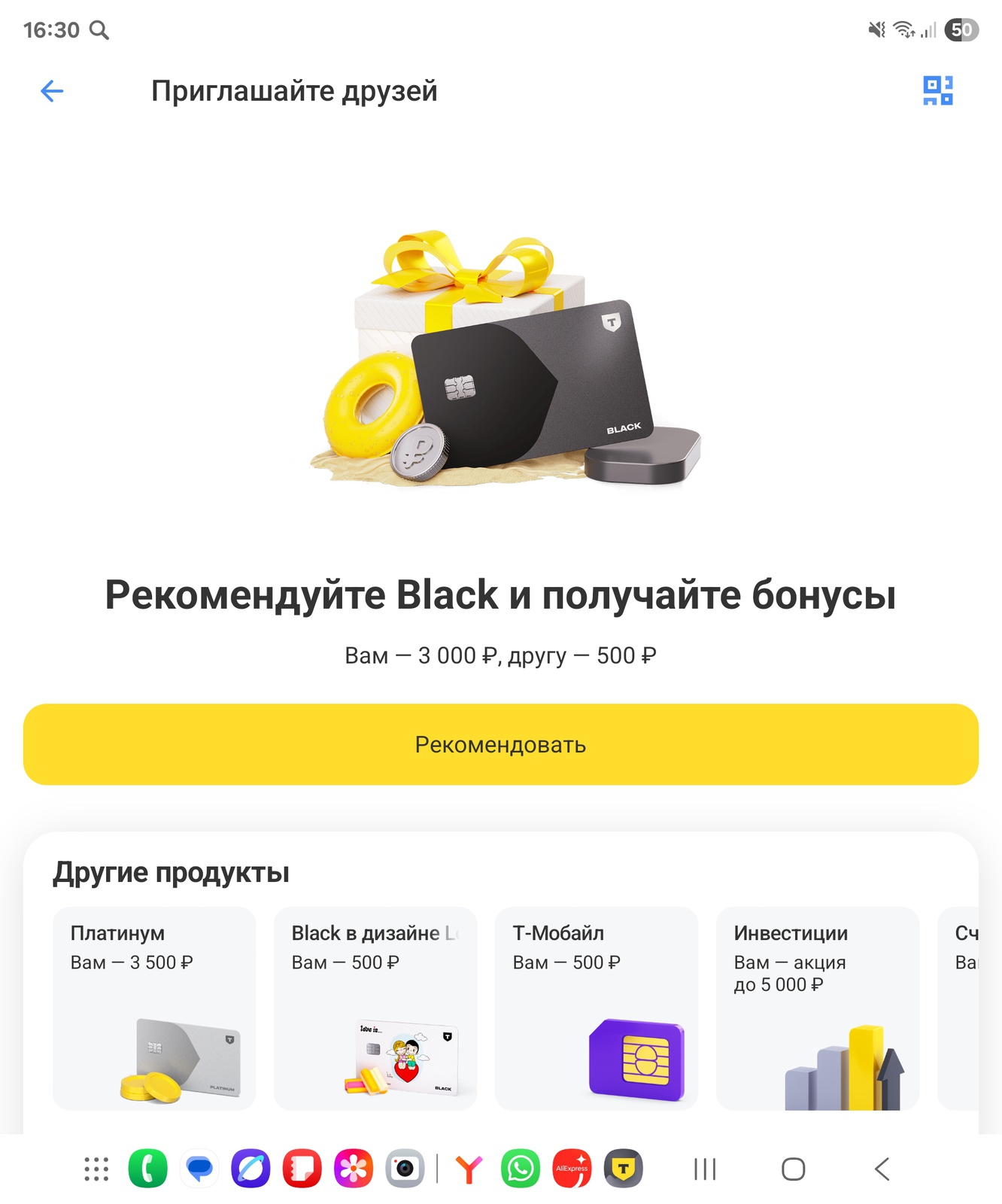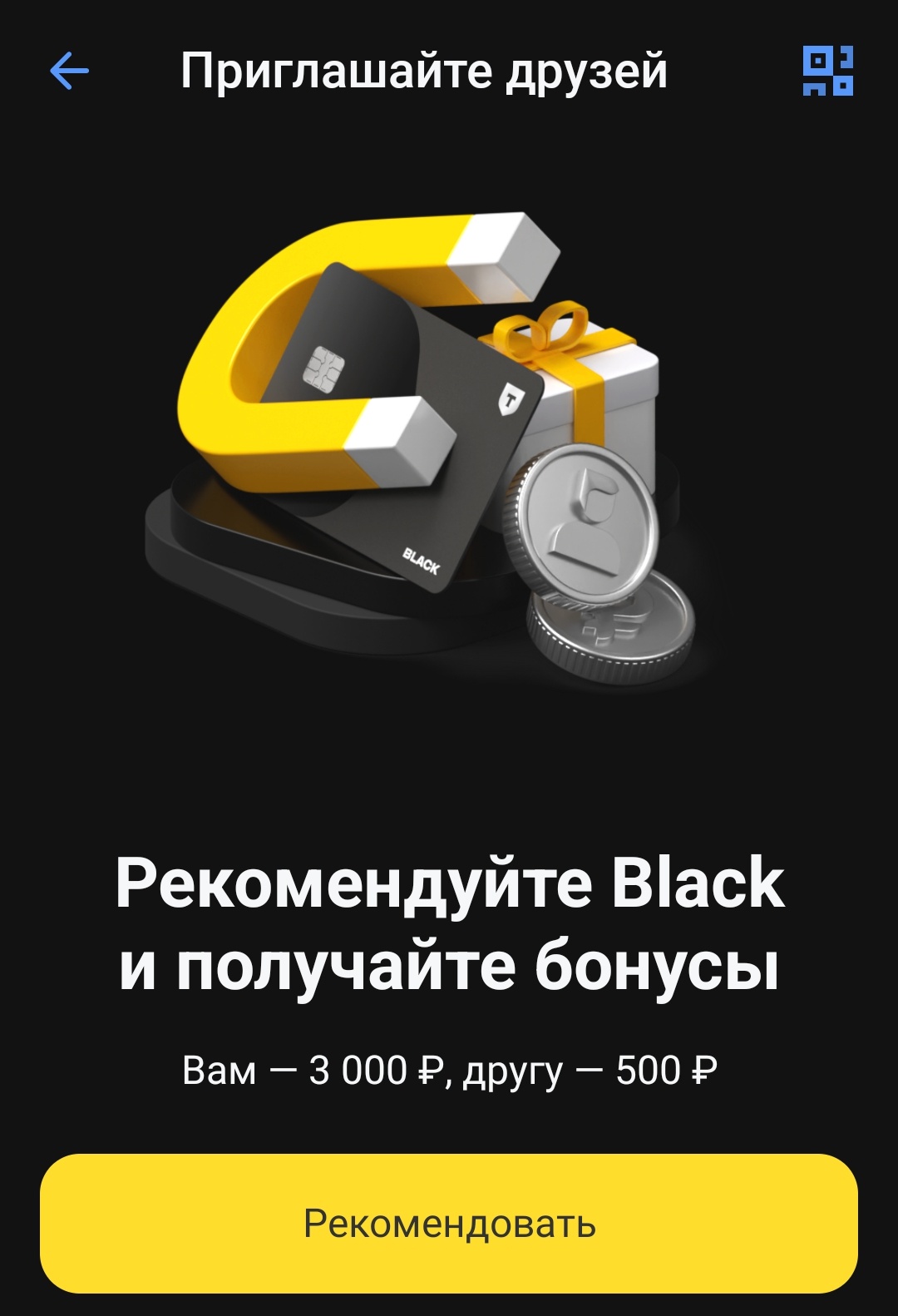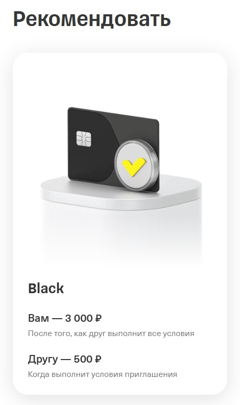 Предлагаю выгодно оформить дебетовую карту Black от Т-Банка. За оформление карты по моей ссылке плачу 1500₽, а также вы получите 500₽ от самого банка. Итого: 2000₽. Данное предложение актуально до 28 февраля!