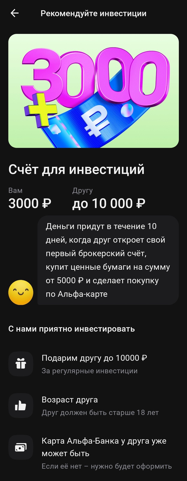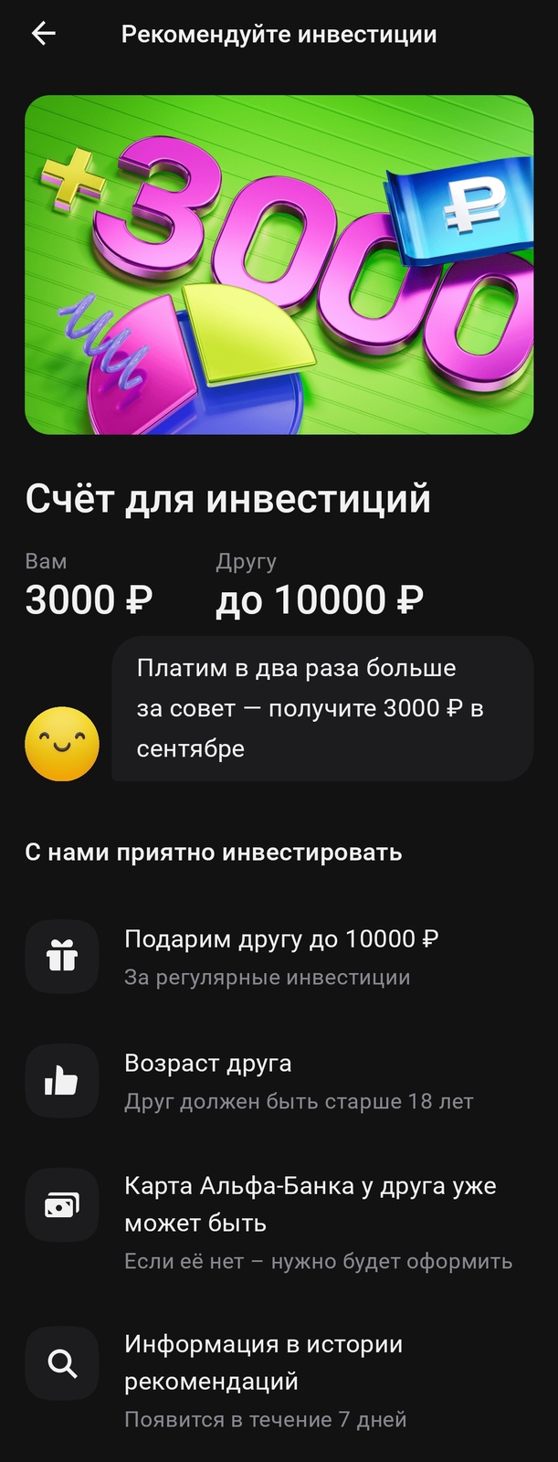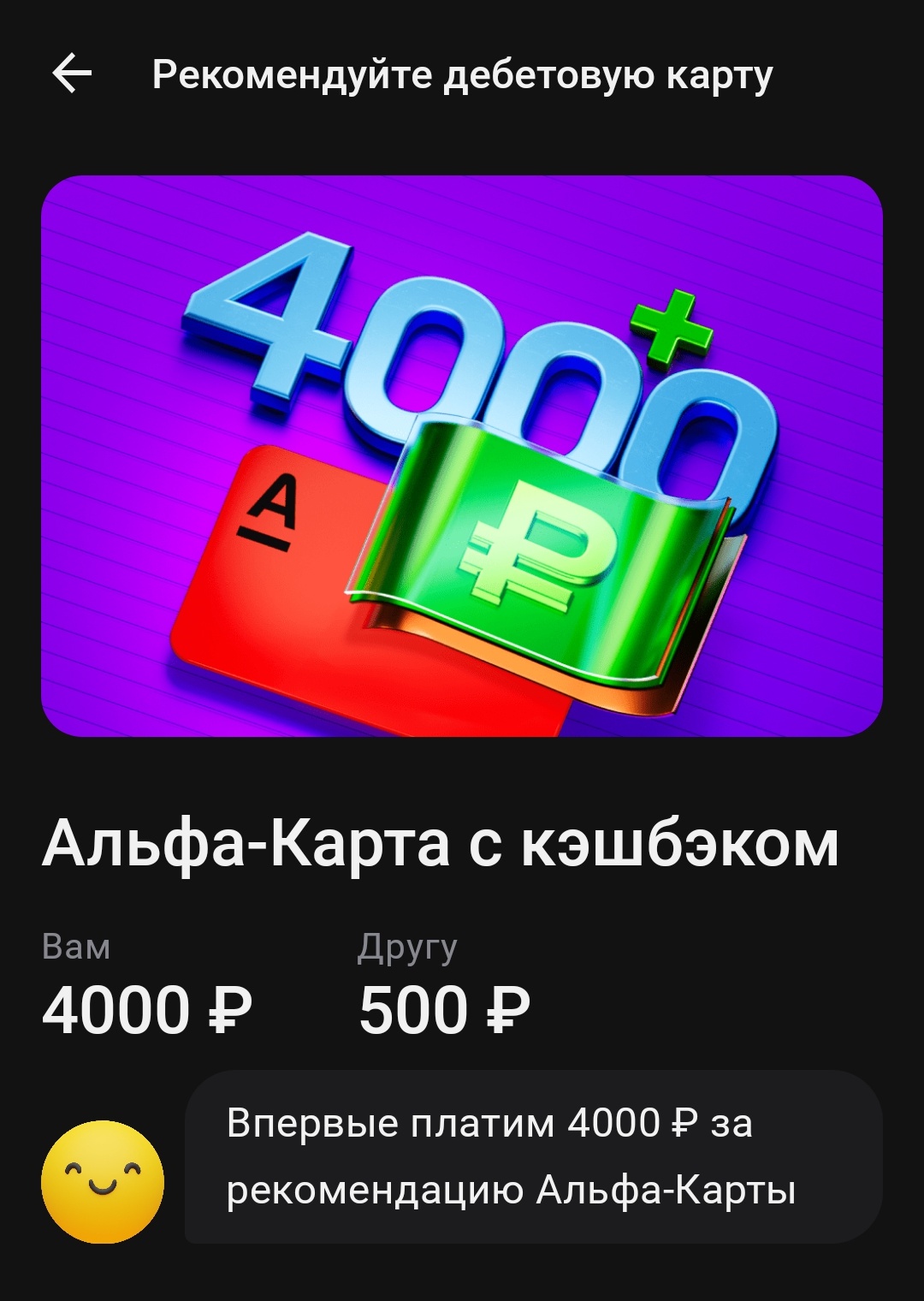 Я оформил карту Пятерочки от Альфабанка на супругу мне начислили 120 руб. Она пригласила подругу ей начислят 20-40% от 360 руб., и я при этом бонусом получаю дополнительно 10% от 36 руб.