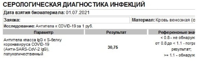 2. на антитела IgG к N-белку (показывает количество антител после болезни, его ещё в госполиклинике можно бесплатно сделать)