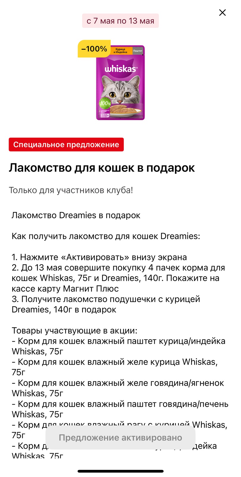 Elena @Amreeta, у меня вообще нет для магнит у дома. Только 4- экстра и семейный, там дримс курица 140, а для МК - 5 надо и дримс сырный. Можно несколько раз на акк делать