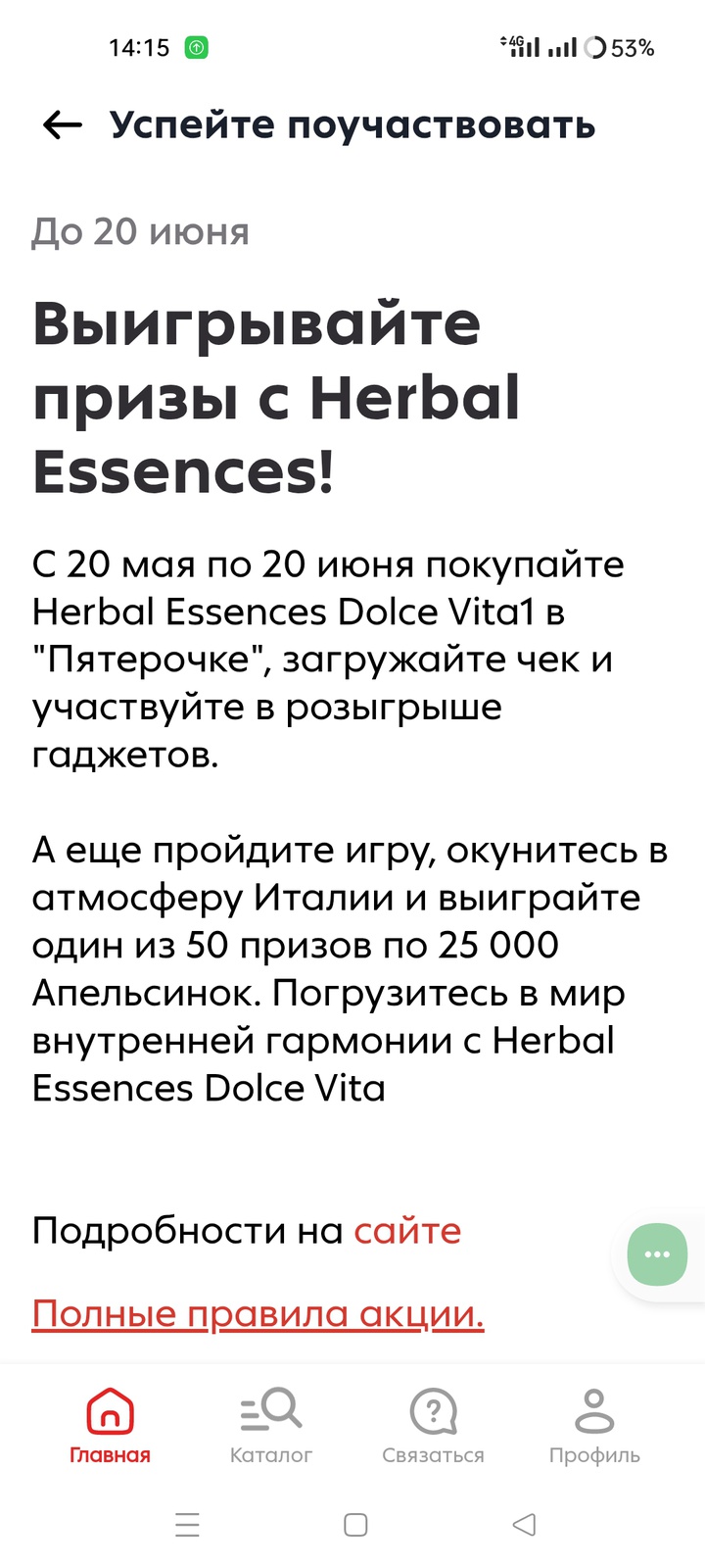 В приложении Пятёрочка
