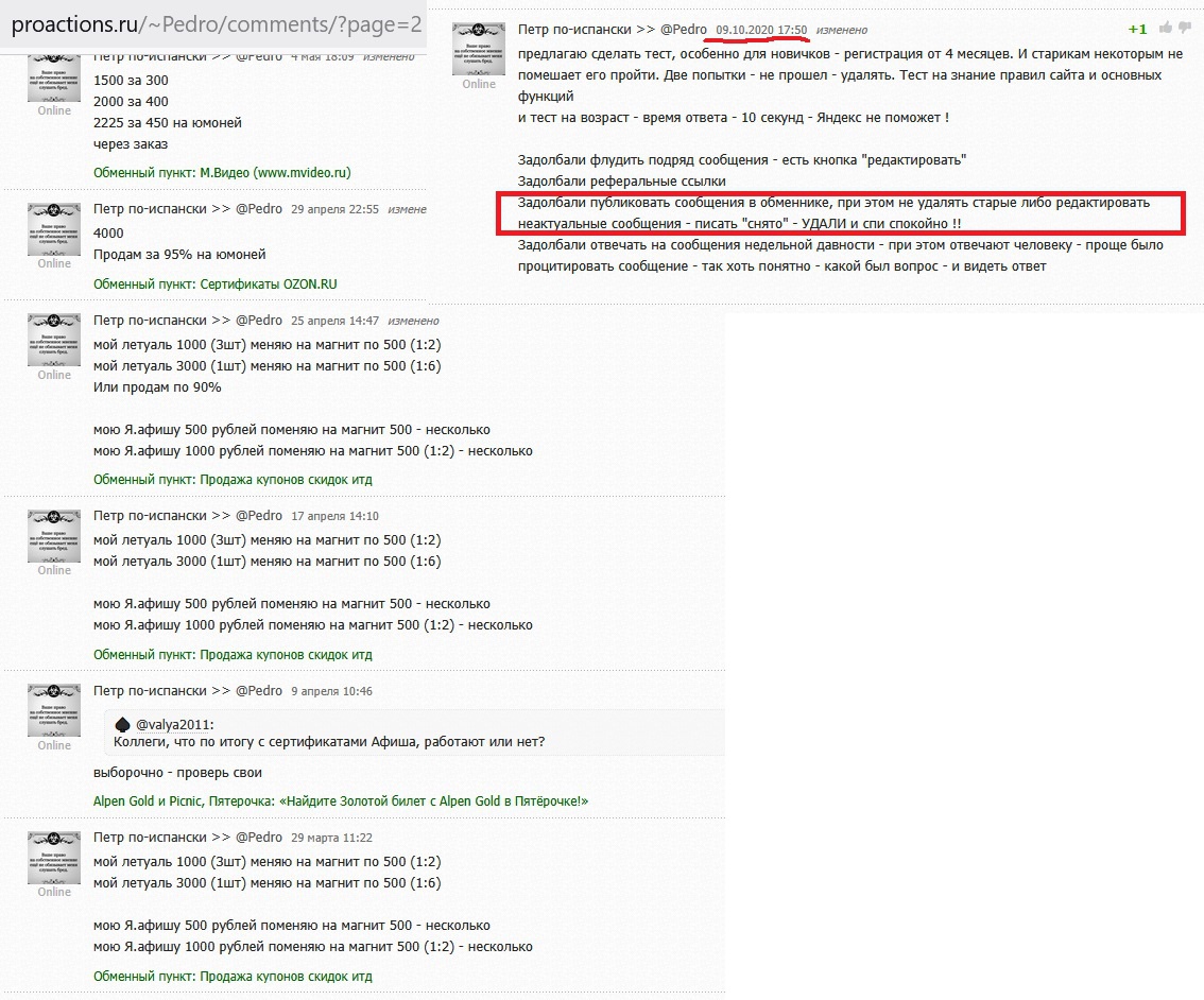 Мария @High_Five:соглашусь но есть одно но, я например продаю серты по 75 или 50% .Я сей час про себя говорю мне эти серты особо не нужны я за наличку .Иной раз серт на 30-40к лучше деньгами 15к или 20к но живими деньгами или кэшом в электронном виде на карте .каждый выбирает то что для него в данный момент в приоритете .Вот эти продажи сертов озон по 90% от суммы вообще не понимаю в особенности малым наминалом до 10к .Лучше не брать такие серты экономии особо нет с 10ки падает 1к смешно + риск блока получить и если есть средства на озоне в виде других сертов в личном кабинете то реально жалко их будет потерять ради 1к экономии .Про большие наминалы только лично из рук в кури и с последуещей активацией и получением товаров .Но это все мои личные мнения и каждый выбирает на свою пятую точку приключения сам .
