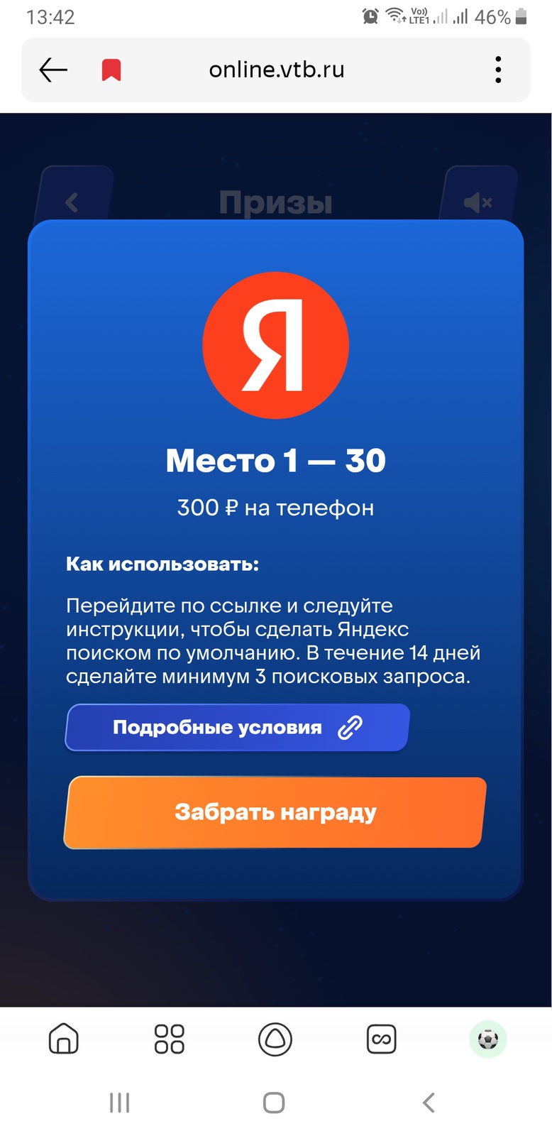 Ольга Юченкова @olenka20:Мой шок в шоке от жадности ВТБ. Вот что оказалось обещанным призом "300 рублей на телефон" в первом этапе игры. При этом, заметим, банк посылает клиентов в квест по какой-то левой ссылке. Хотя главное правило безопасности в интернете - по всякой хне не переходить.