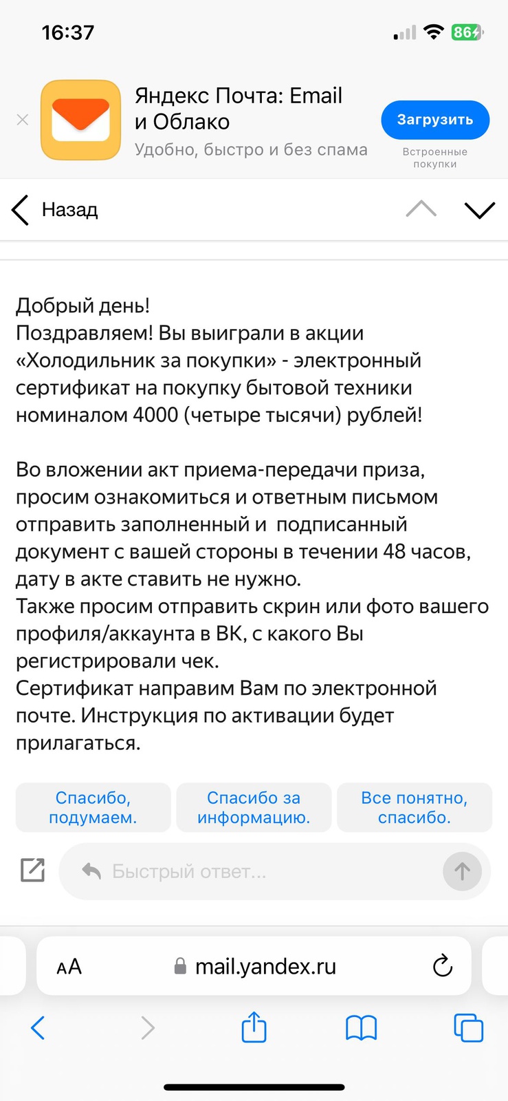 Валентина @Valyav:Спасибо! Прислали поздравлялку на сертификат в 5000.