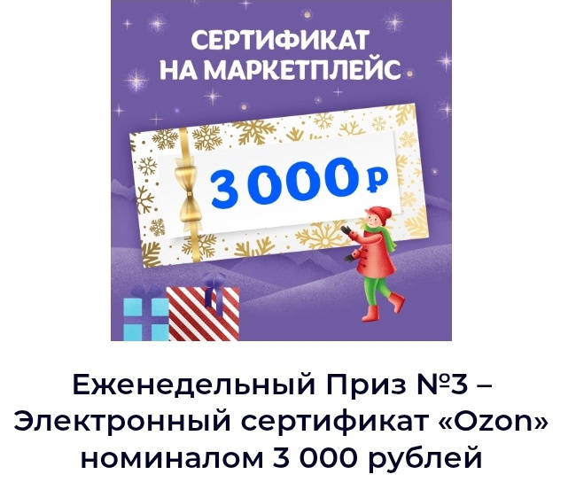 Серт озон на 3000 от Акция Milka и Барни, Oreo, Юбилейное, 7days, Alpen Gold, Пятерочка «Дарите чудо каждый день»