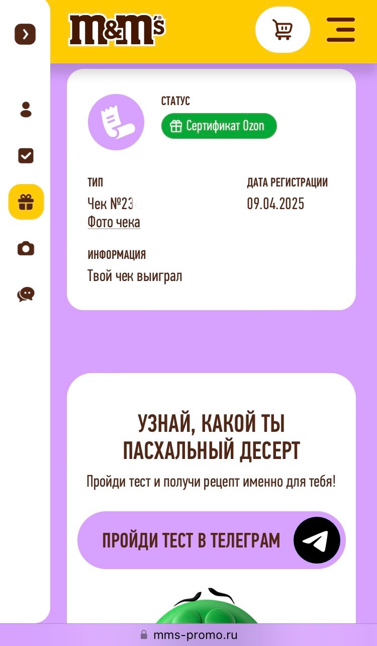 Призы / Лента призов / Forest777 / Серт Ozon от M&M's