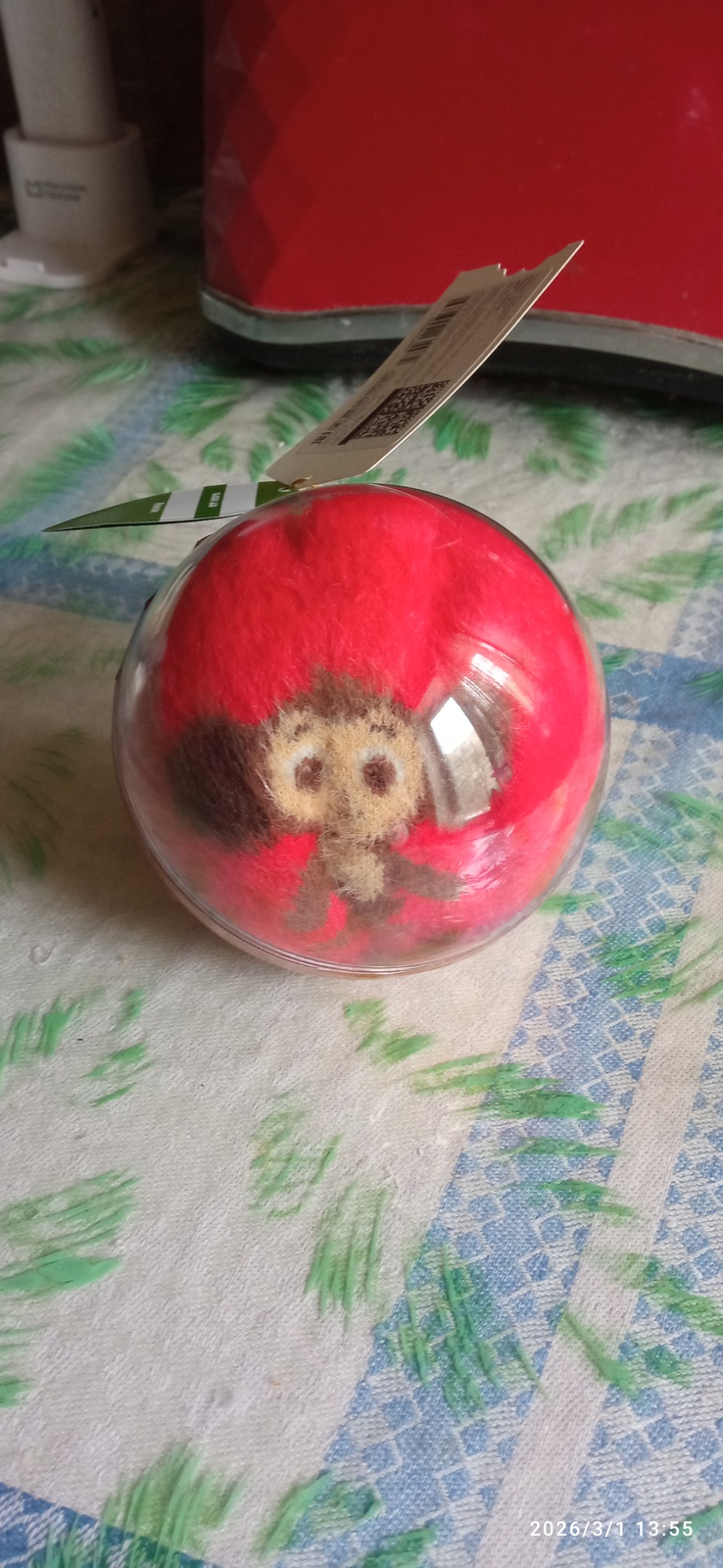 Шерстяные носки с изображением Чебурашки, цвет красный.
