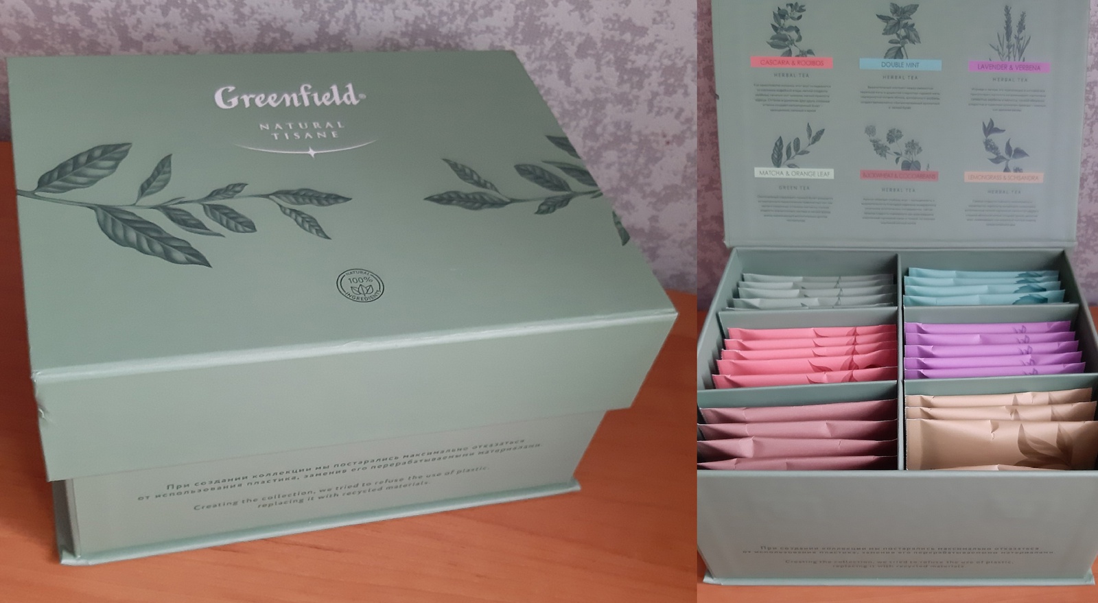 Приз был заказан аж в августе, приехал в январе. Хорошая подарочная коробка, на магнитах. Чай на любителя.
