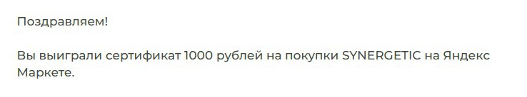 Призы / Лента призов / Inyan12 / 1000 рублей на покупку Синергетик на Яндекс-маркете от Synergetic от Synergetic