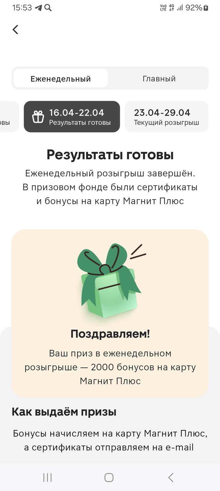 Поздравления. Я тоже никогда не верила что в магните что-то можно получить. Вчера пришло от Вискас бонусы . Просто взяла потому что акция была бери 5 дешевле -чем 4))))) а тут приятность пришла. Но как то все равно не очень то буду там закупаться. В пятерочке привыкла по чекам