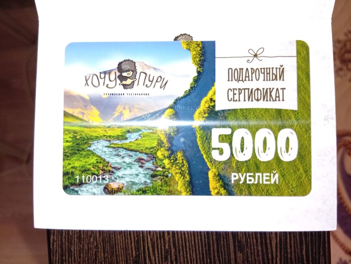 Сертификат в ресторан "Хочу Пури" от Розыгрыш в местной группе ВК
