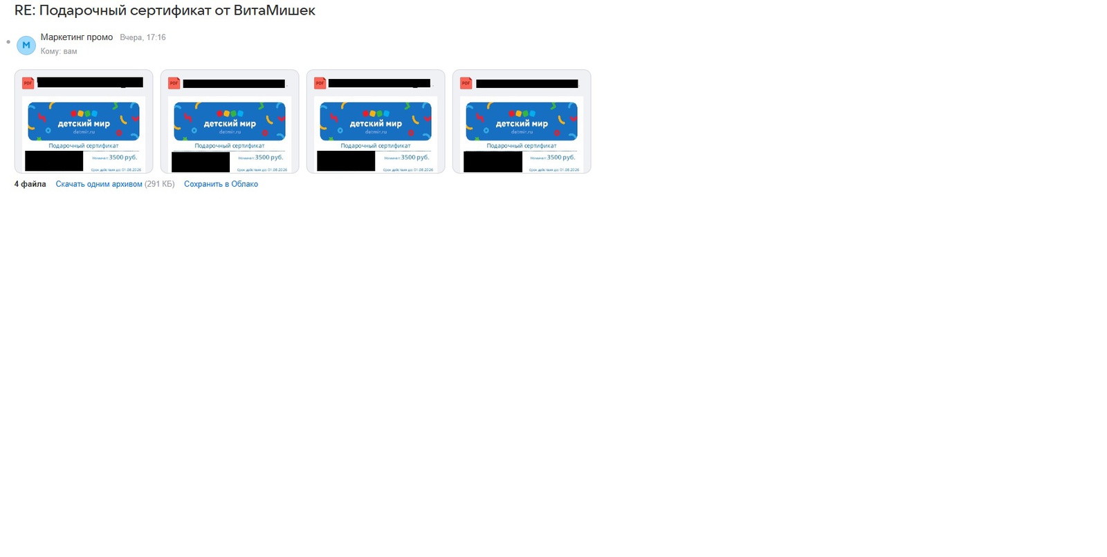 Призы / Лента призов / Kladoiskateli / Сер. на 3500р в детский мир 4 шт. от ВитаМишки