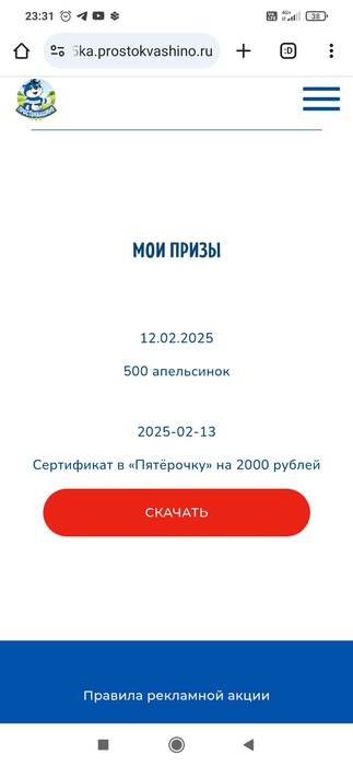 Призы / Лента призов / MoscowPig / Сертификат в Пятёрочку на 2000 рублей. от Простоквашино