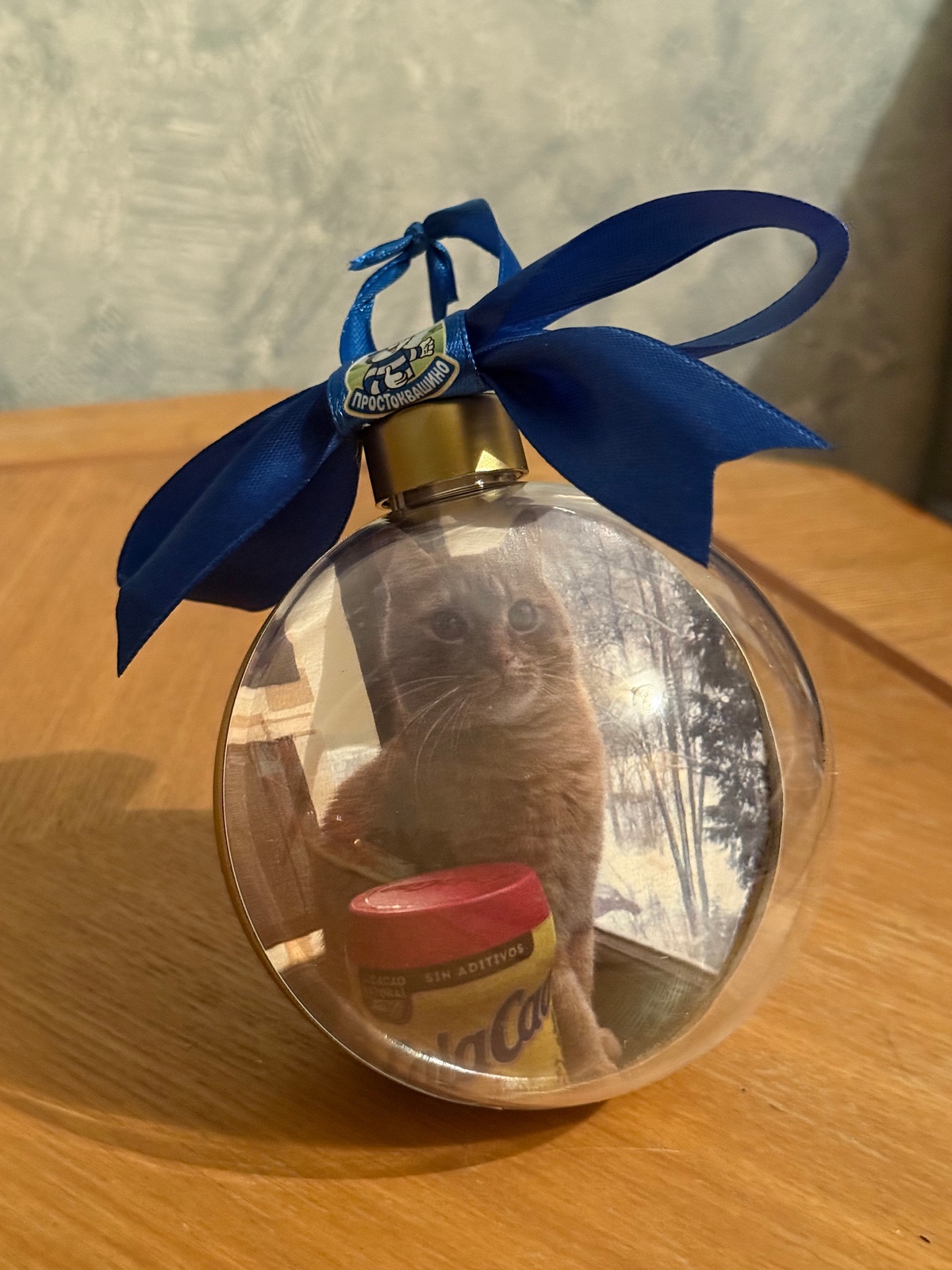Спустя три месяца ожидания наконец-то привезли новогодний шарик. Я и мой кот, довольны😊