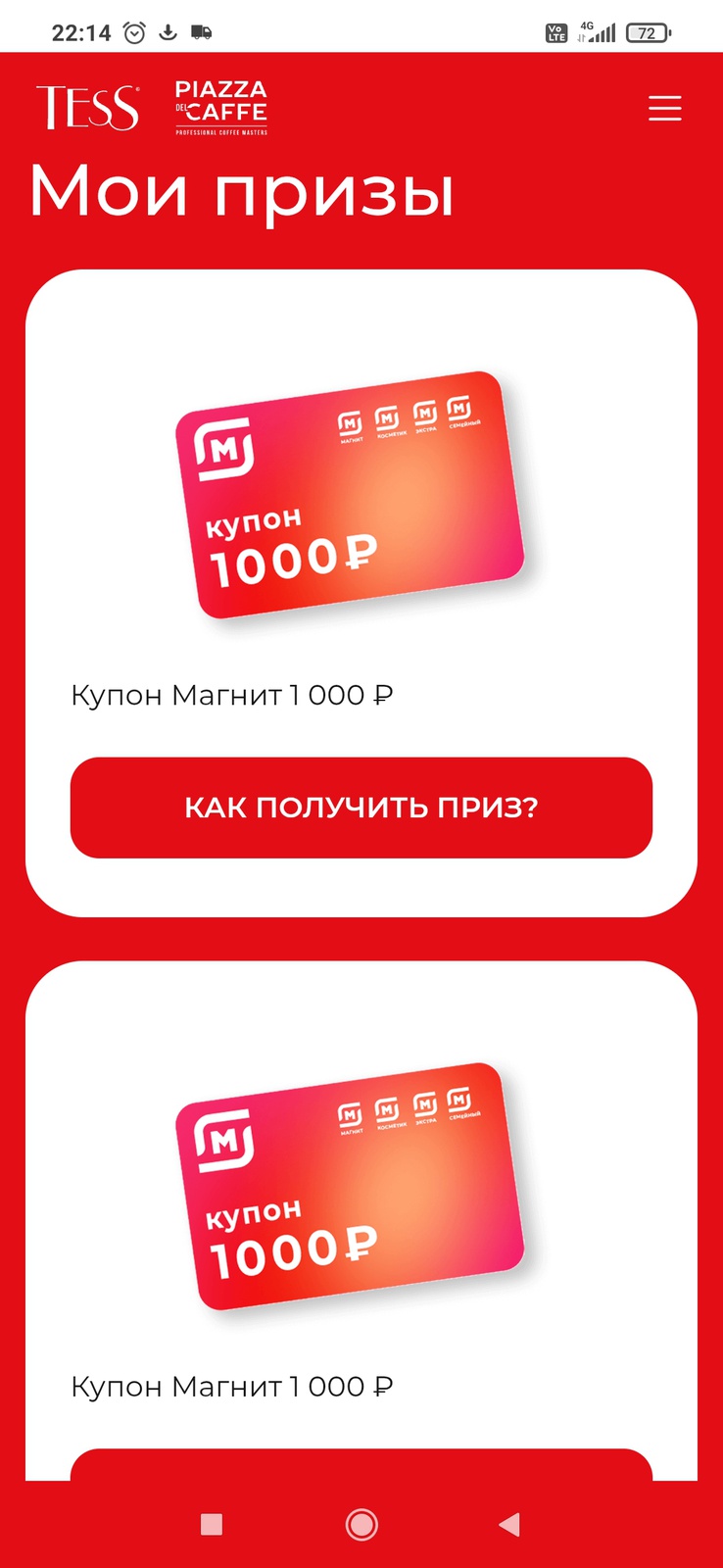 Приз акции Tess «Отправляйтесь в путешествие с Tess и Piazza Del Caffe»