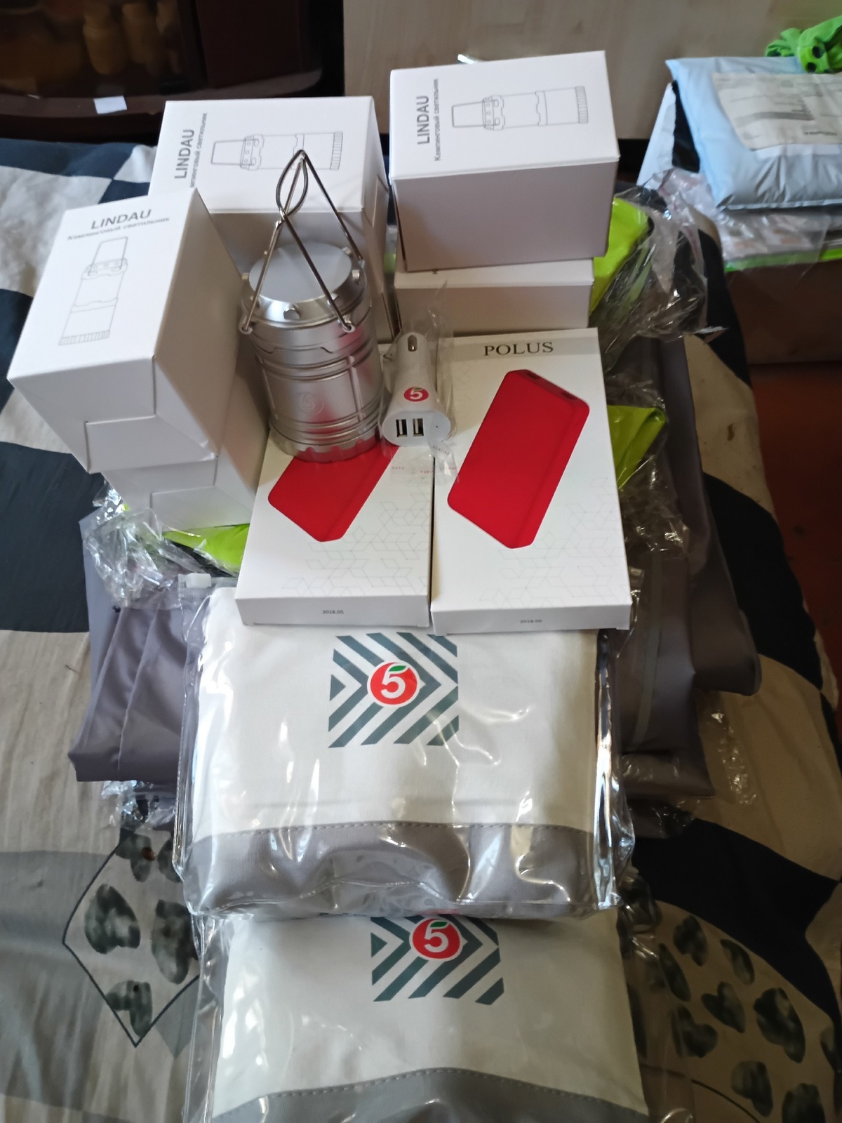 Приехали призы за игру в кол-ве : Дождевик - 4 штуки. Косметичка с дорожными флаконами - 3 штуки. Пауэрбанк - 2 штуки. Фонарик кемпинговый - 6 штук.Поясная сумка - 2 штуки. Автомобильный адаптер - 1 штука. + Еженедельные призы: Спортмастер 20 000 руб. + 10 000 апельсинок. Наш семейный улов от этой акции.