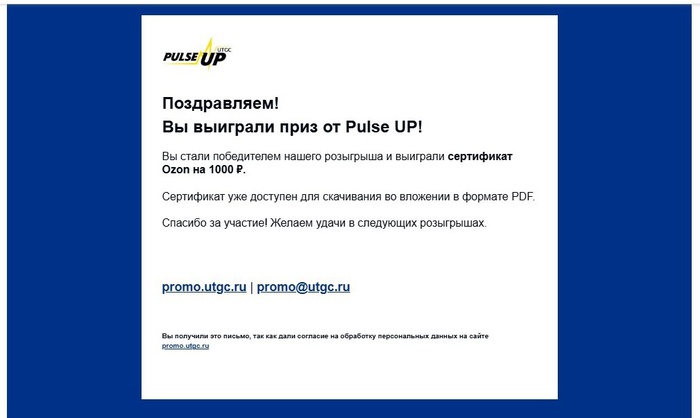 Призы / Лента призов / PetrovichR / Купон озон от Акция PulseUp и Красное&Белое: «PulseUp. Тест на удачу. 1200 победителей!»