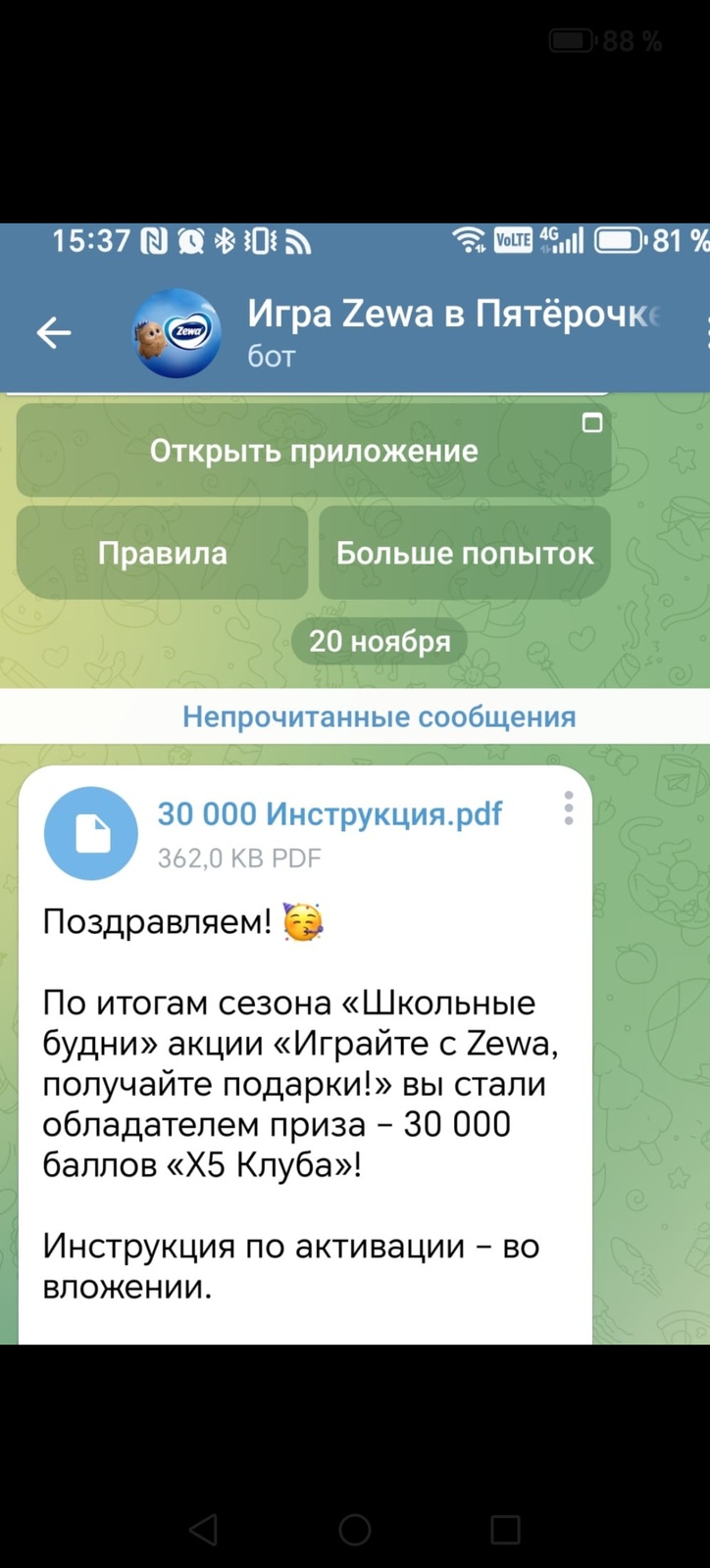Призы / Лента призов / Rasima / Баллы пятерочка от Zewa