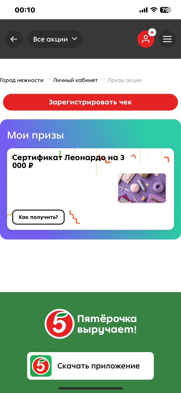 Призы / Лента призов / Rechnaya / Сертификат от Milka