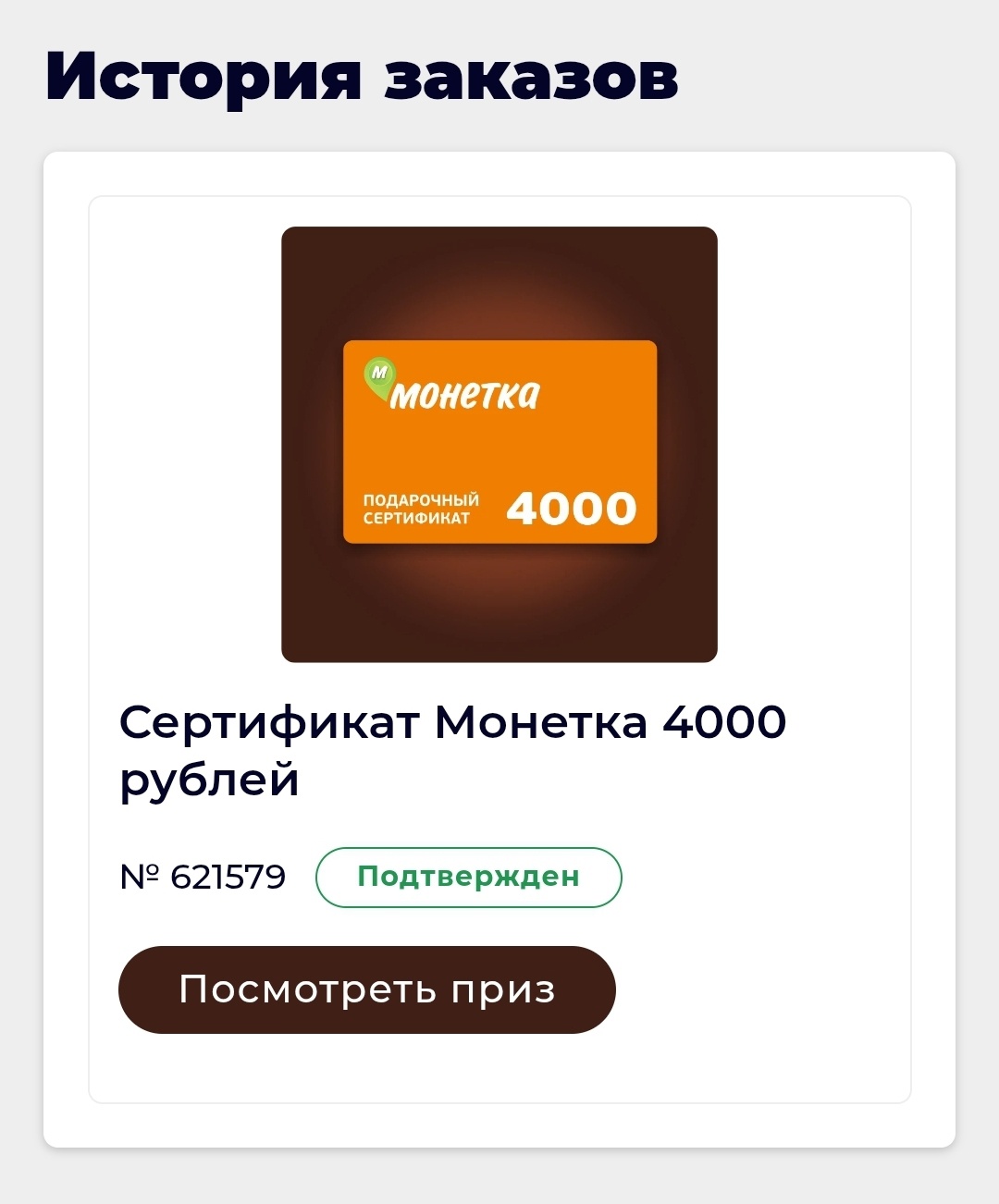 Призы / Лента призов / Romarise / Сертификат «Монетка» 4000 руб от Snickers
