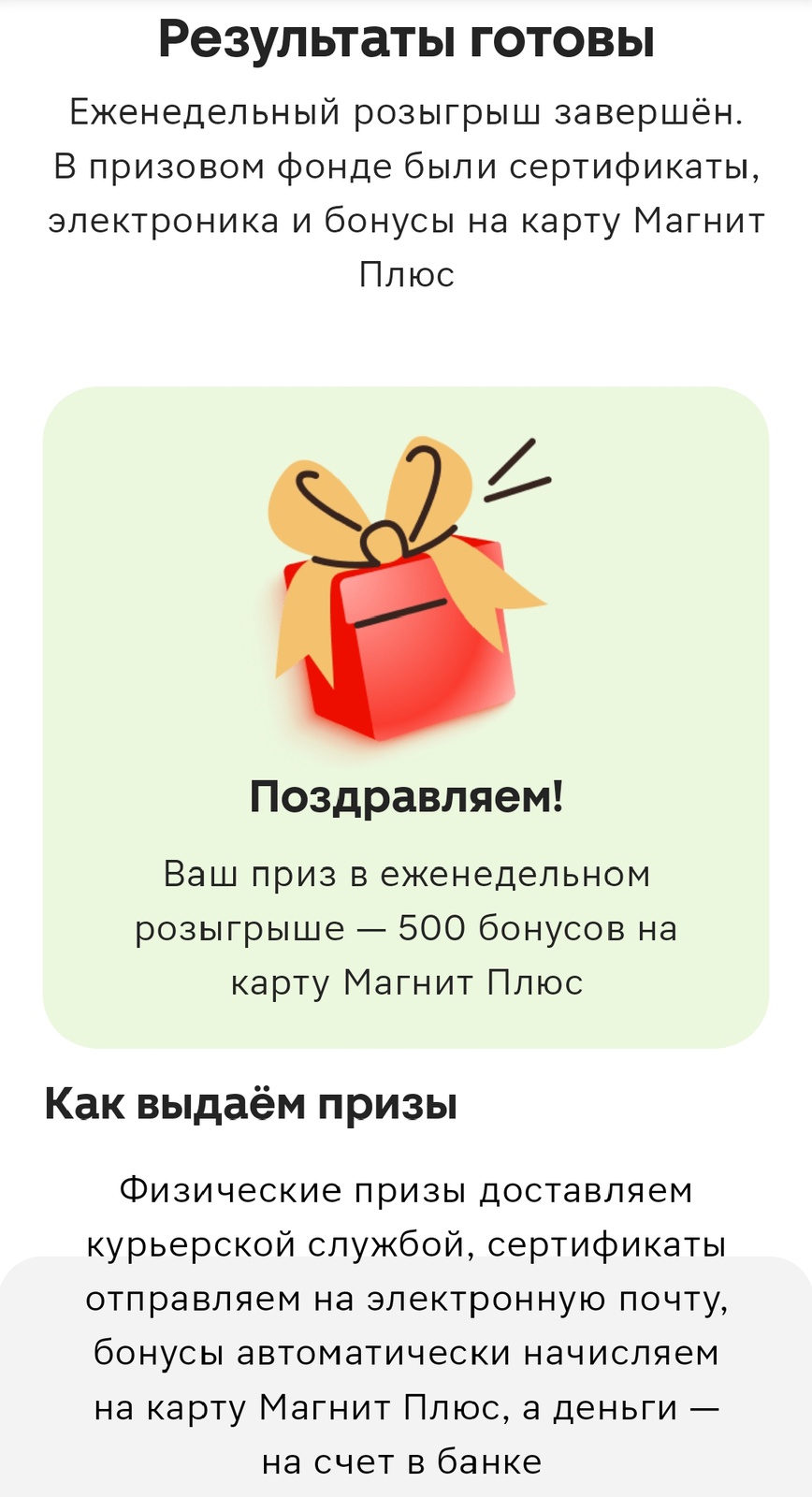 Призы / Лента призов / Sample / Бонусы на карту Магнит от Юбилейное