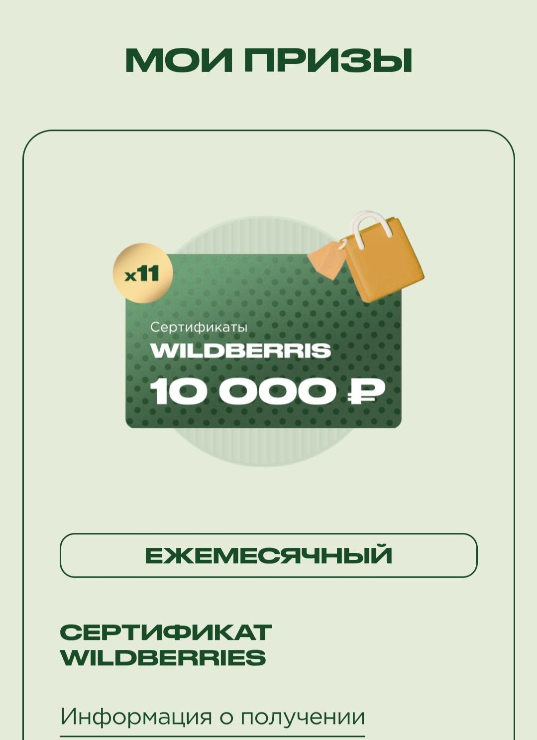 Призы / Лента призов / Swetik2512 / Сертификат Wildberries от Greenfield