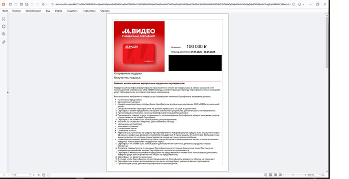 По условиям акции выигрыш был сертификат на iPhone. Но я очень рада, что прислали сертификат без указания товара. Купила ребенку компьютер.