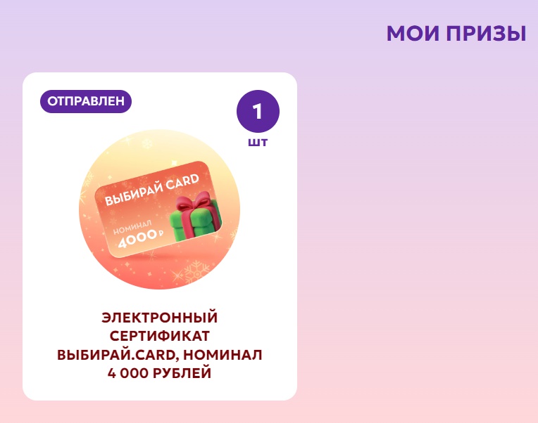 Призы / Лента призов / VicVic / Сертификат на 4000 рублей за Мини-игру от Добрый