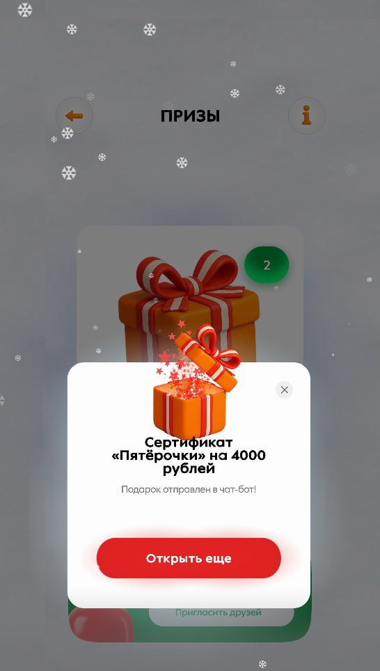 Призы / Лента призов / a / Сертификат «Пятёрочки» на 4000 рублей от Пятерочка
