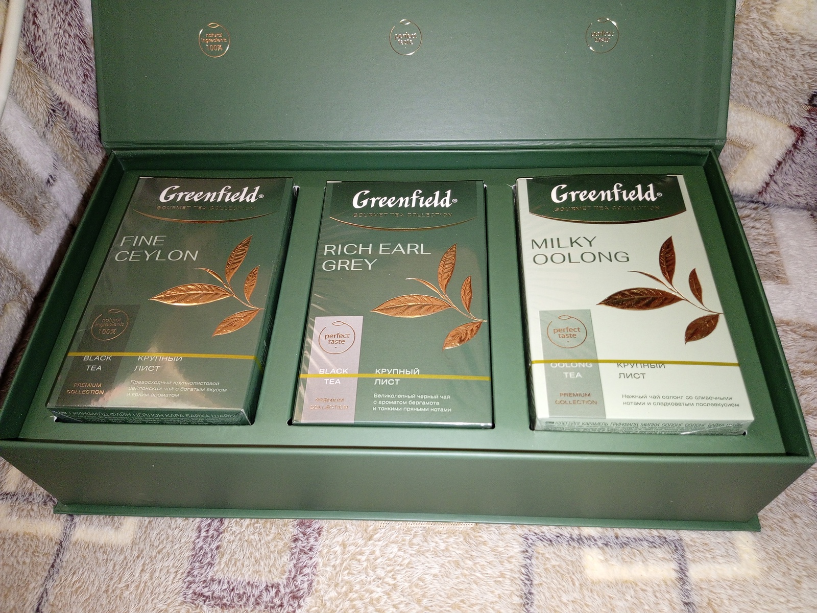 Получили сегодня наконец свои накопленные призы. 6.02.2025 года. За прошлогоднюю акцию.Очень красивая , добротная картонная коробочка с магнитным замком, внутри три коробки разного крупнолистового чая , черный, с бергамотом и улун.