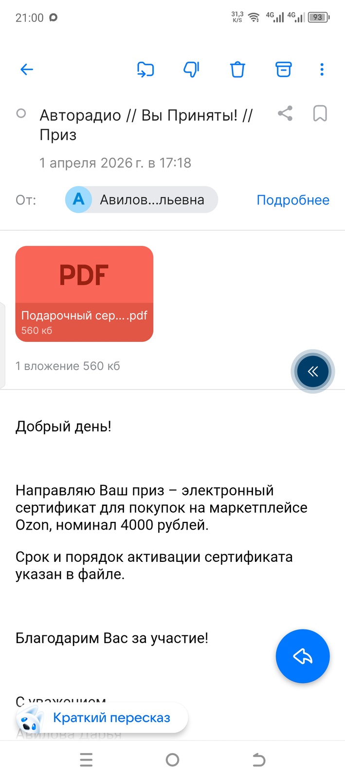 Игра в Авторадио. Рассказала историю принятия на работу. Мой рассказ понравился) 👍 приз и вышлп эфир 🏆