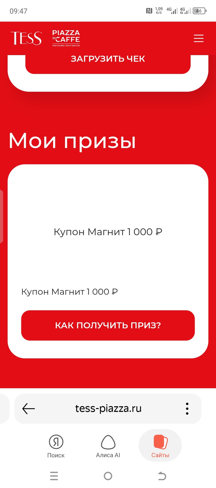 Призы / Лента призов / galimova86 / Сертификат 1000 рублей от Tess
