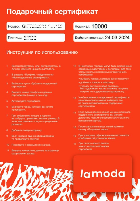 Призы / Лента призов / liren / Cертификат 10000 руб. на шопинг в Lamoda от Пятерочка