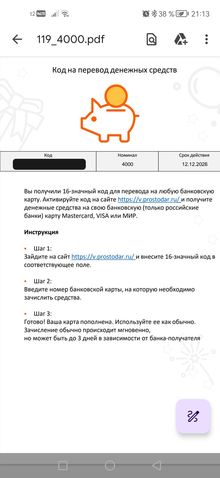 4000 рублей от добрый пятёрочка от Добрый