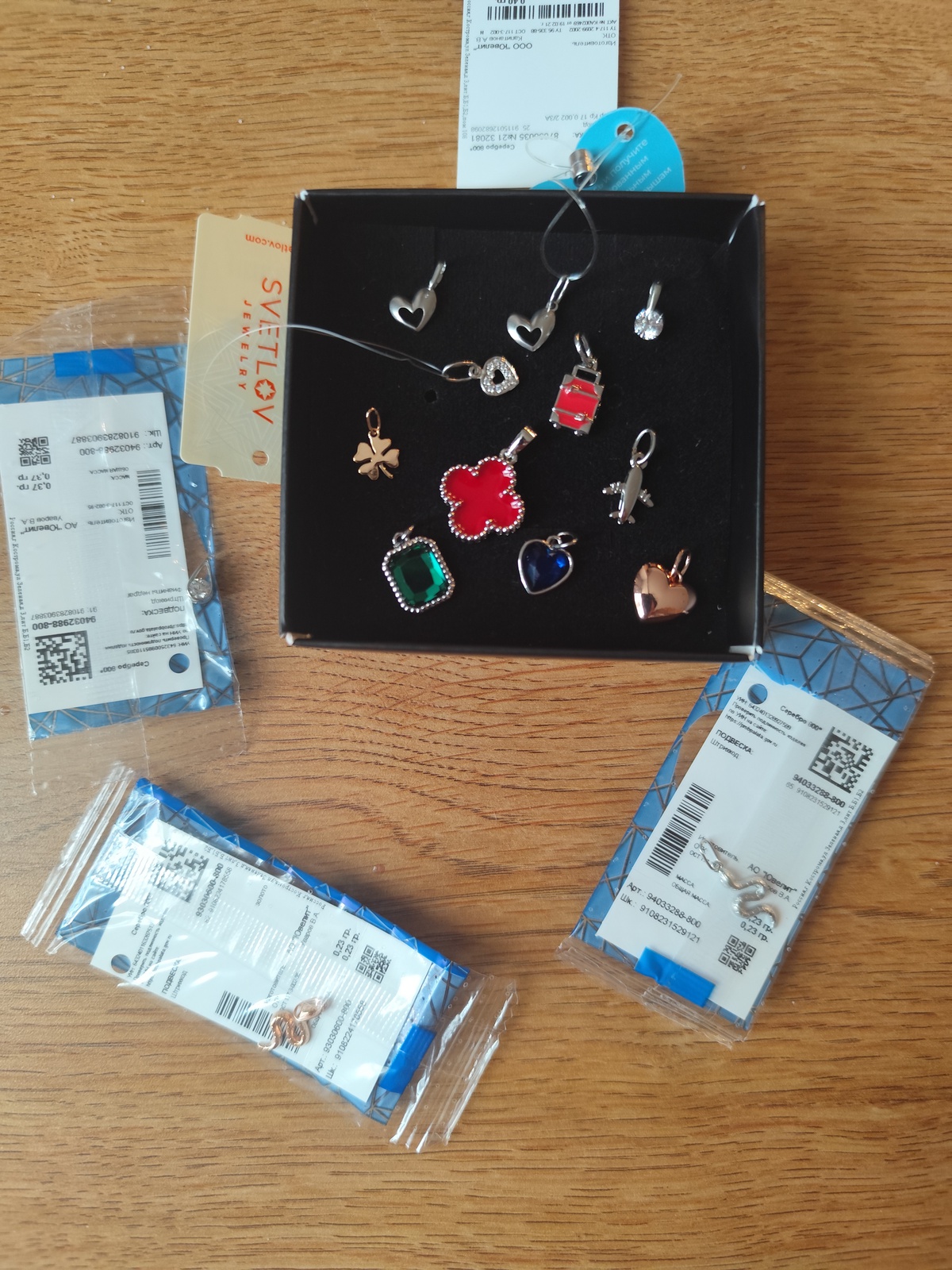Тоже сегодня решила сходить получить по промокодам в 585GOLD. До этого не забирала никогда. Была приятно удивлена, что не просто подвески. Получила кулончик на цепочке и браслетик.