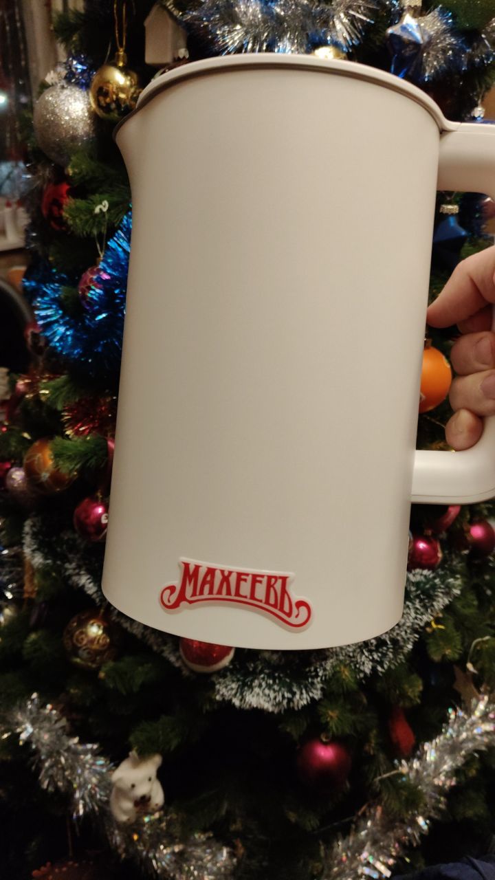 Вчера привезли новый чайник от акции Лента и Махеев! Чайник чисто прям китайский,даже вилка китайская,так что понадобится переходник. А сам чайник классный,и с яркой наклеечкой Махеев!