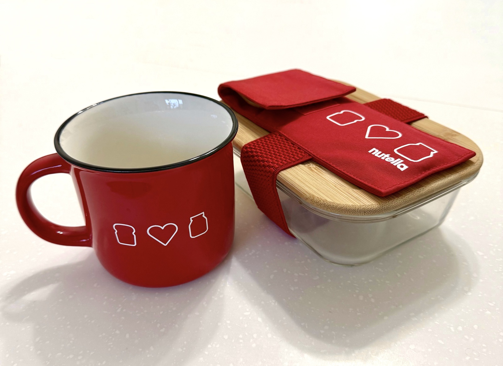 Не особо люблю призы с брендингом, но эта кружка стала исключением. Мне кажется, что тут все получилось скромно и стильно. А ланч-бокс обычный, брендированная резинка снимается.