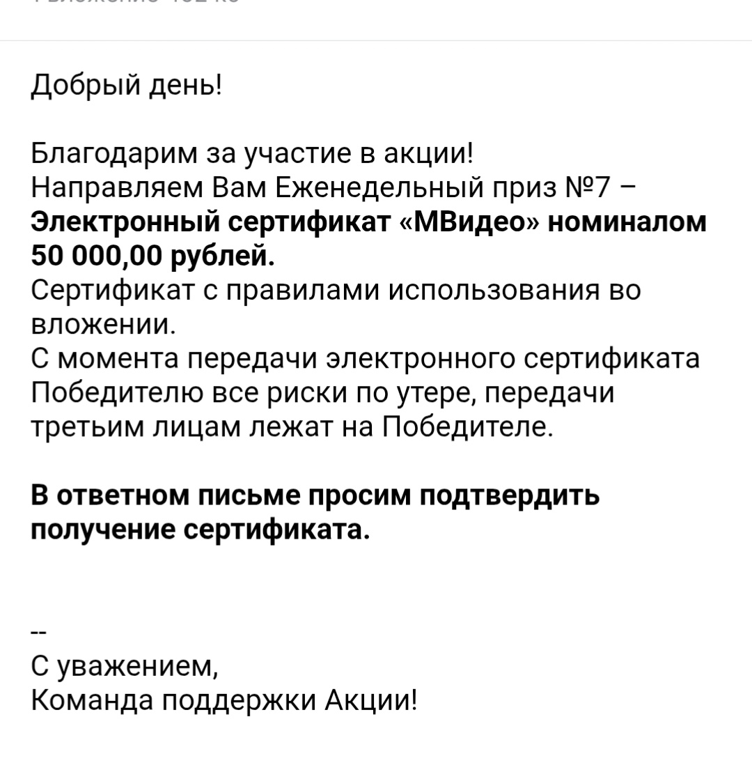 Сертификат в М-видео на 50000руб от «Школа любознательности» в торговых сетях «Пятёрочка» и «Перекрёсток»