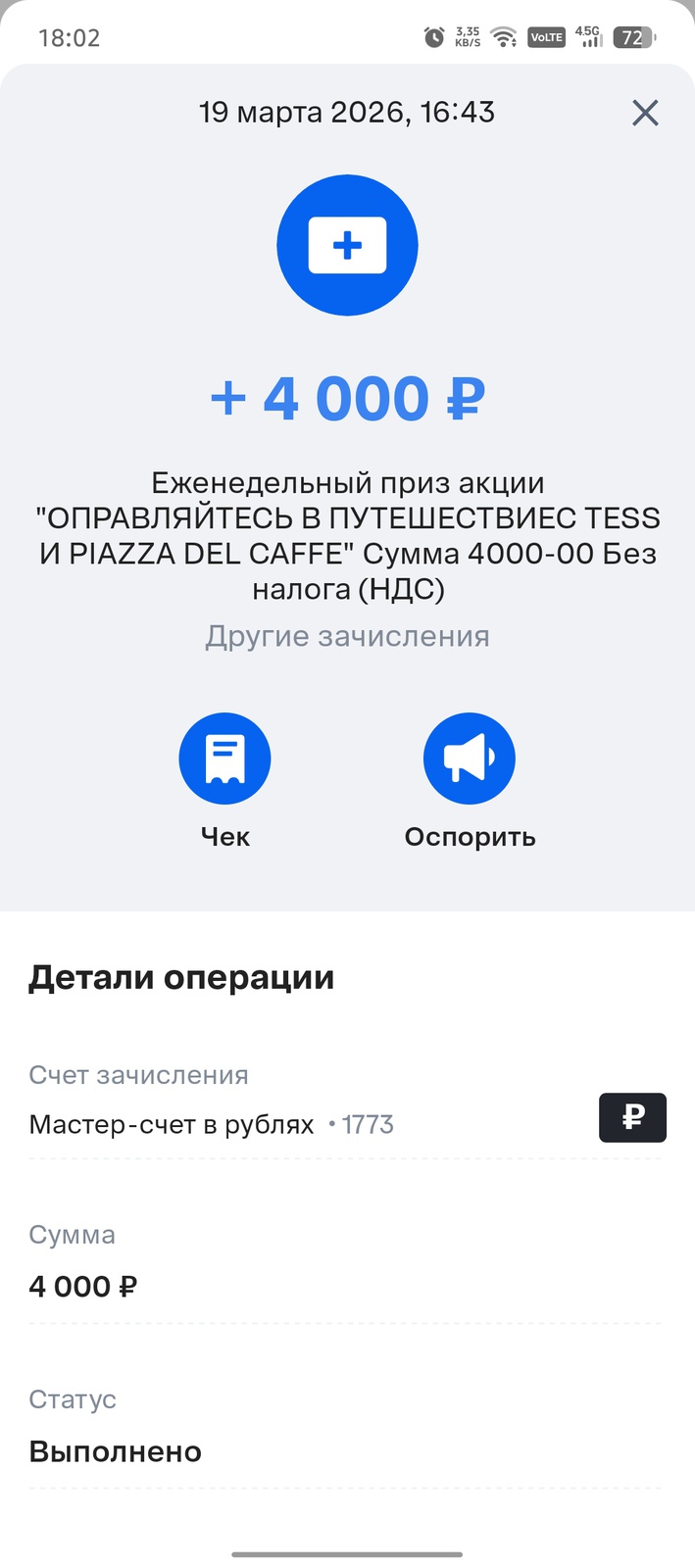 Призы / Лента призов / olenka20 / 4000р на карту от Tess